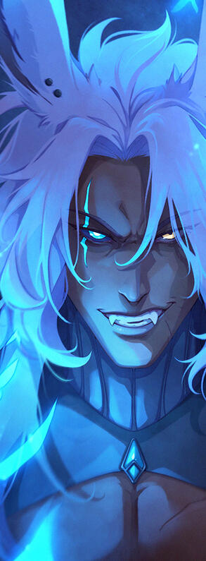 Due to recent, harrowing circumstances, Finn has lost a physical arm and now manifests a new one in its stead; ethereal and powered by his stores of aether, he rarely keeps it hidden, drawing the attention of curious eyes. Perhaps your character is drawn to the aether he burns so quickly to maintain it, or have questions as to what happened.